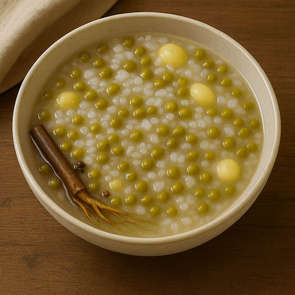 Author: Hu Sihui, Yinshan Zhengyao (1330) Beliefs & Benefits: • Mung beans were considered “cooling” and detoxifying, used to clear heat and reduce inflammation. • Lotus seeds were believed to calm the heart and strengthen the kidneys. • Rice was the staple grain, neutral in nature, and used to harmonize the effects of other ingredients.